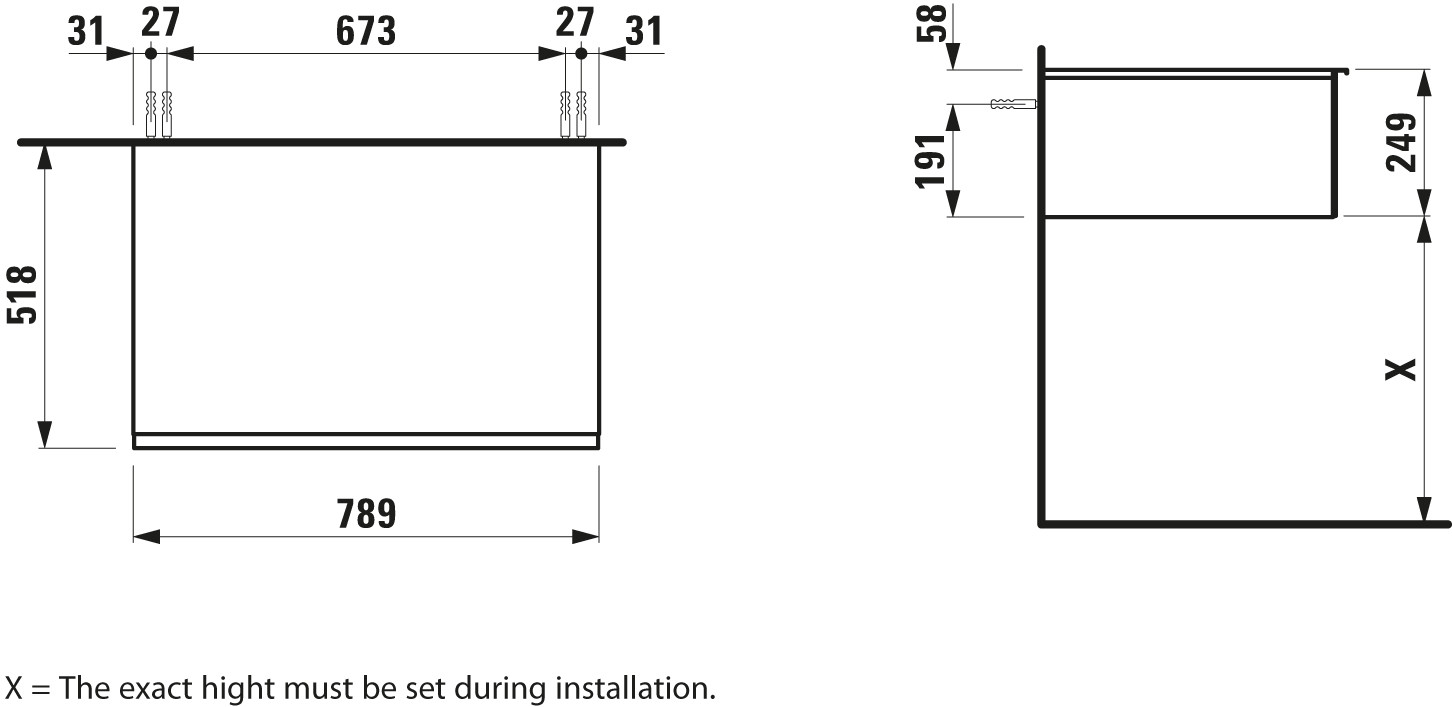 Laufen Schubladen-Element SPACE 58,5 x 25 x 52, weiß matt, Soft-Close, 1 Schublade W492261