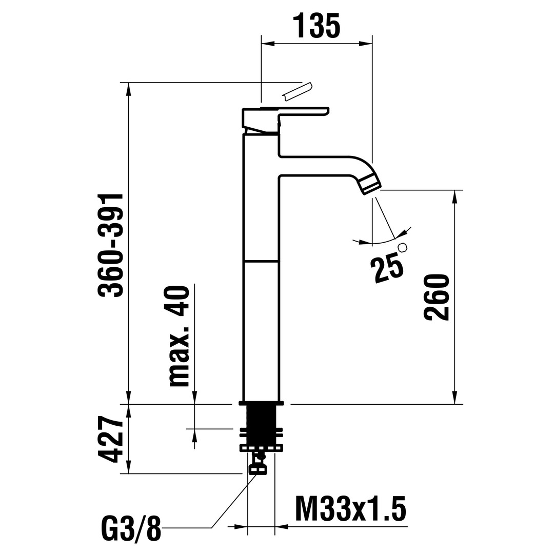 Laufen Waschtisch-Einhebelmischer LUA ECO+ hohe Ausführung, Festauslauf 135mm, mit Ablaufventil, chrom