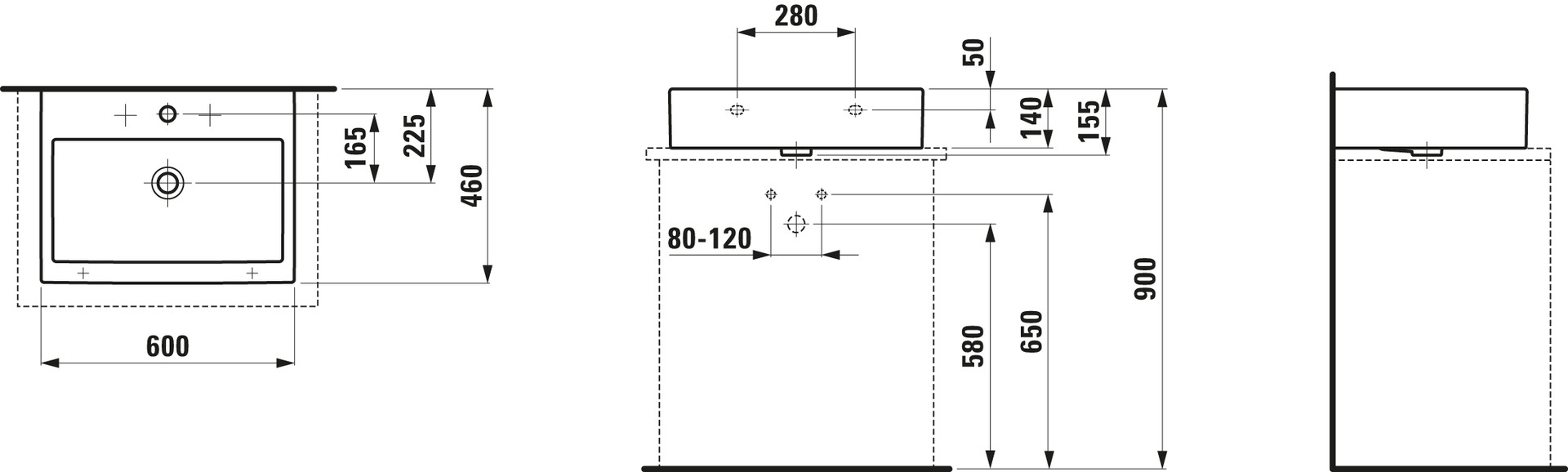 Laufen Waschtisch LIVING CITY 60x46cm, Unterseite geschliffen, mit Überlauf, 3 Hahnlöcher, weiß W55101
