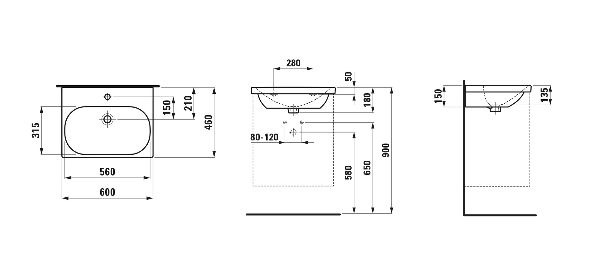 Laufen Waschtisch LUA 60x46cm, unterbaufähig, mit Überlauf, mit 1 Hahnloch, weiß W55242