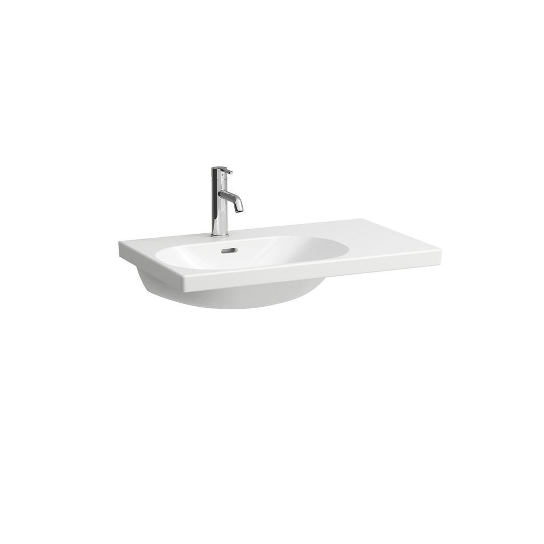 Laufen Waschtisch LUA unterbaufähig, asymmetrisch, Ablage rechts, mit Überlauf, 3 Hahnlöcher, weiß LCC