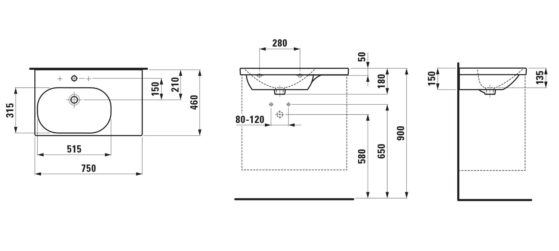 | Anzahl der Hahnlöcher je Waschplatz | 3 |