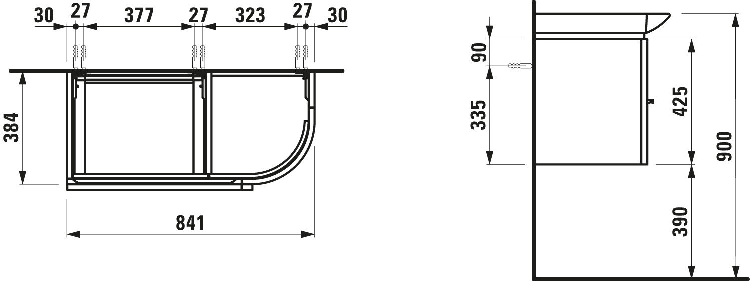 Laufen Waschtisch-Unterschrank Case for Palace 84 x 45 x 37,5 cm, 1 Tür rechts, 1 Schublade links, weiß W492625