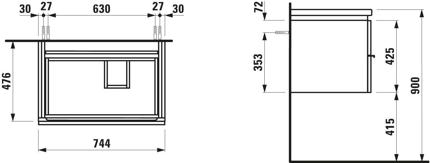 Laufen Waschtisch-Unterschrank LIVING SQUARE 74,5x45,5x47,5cm, 1 Schublade, weiß