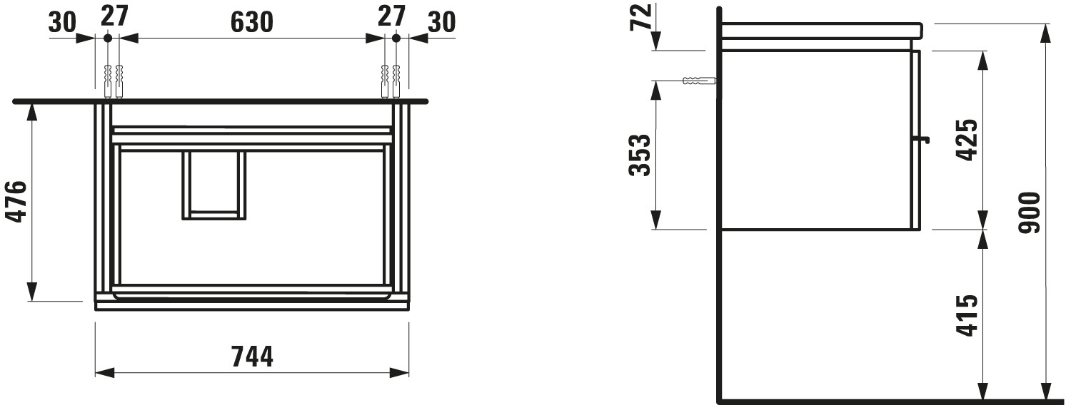 Laufen Waschtisch-Unterschrank LIVING SQUARE 74,5x45,5x47,5cm, 1 Schublade, farbig lackiert W492576