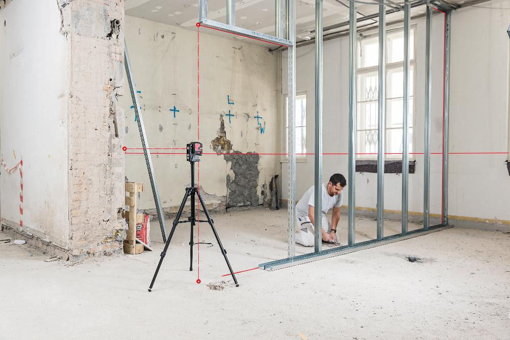 • Ideal für Ausrichtungsarbeiten (z. B. Fliesenlegen, Trockenbau, Trennwände und Elektroinstallationen) sowie Lotpunktprojektionen und das Abstecken oder Übertragen von gemessenen Punkten