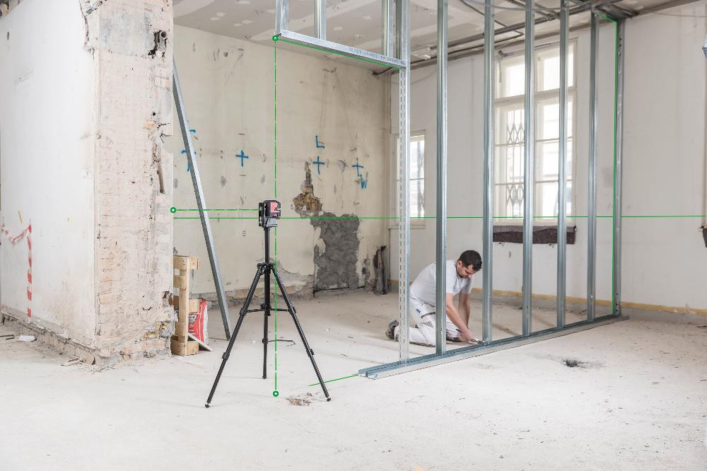 • Ideal für Ausrichtungsarbeiten (z. B. Fliesenlegen, Trockenbau, Trennwände und Elektroinstallationen) sowie Lotpunktprojektionen und das Abstecken oder Übertragen von gemessenen Punkten