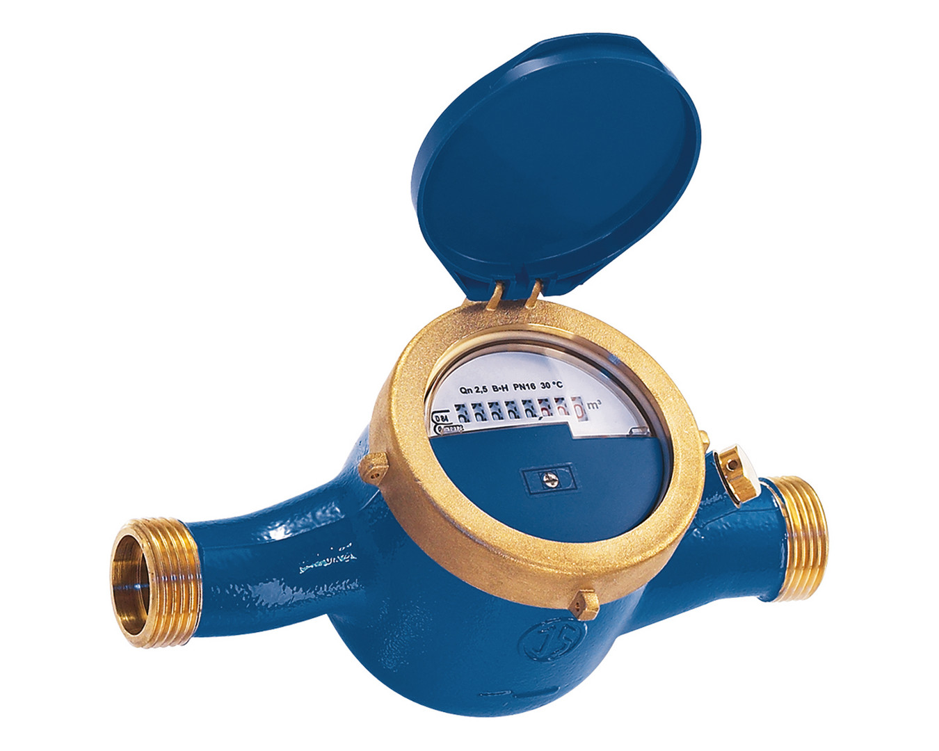 für vertikalen Einbau, Mehrstrahl-Trockenläufer, Gehäuse Messing beschichtet, zulässiger Betriebsdruck PB 16 bar, zulässige Betriebstemperatur, Warmwasser 90 °C, Medium Trinkwasser, Zulassung nach MID (R80H/R50V-Q3-2,5-10 m³/h) (R80H Q3 16 m³/h)