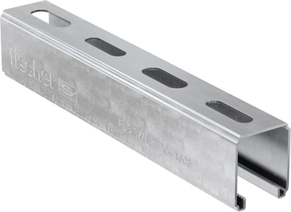 Die fischer Montageschiene FLS ist ein Basiselement des flexiblen Schienensystems. Das C-Profil in 3 Bauhöhen bietet mit ausgeprägter Verzahnung und Ecksicken den Konstruktionselementen des FLS Systems sicheren Halt. Dies ermöglicht bei horizontalen und vertikalen Installationen die schnelle und rationelle Befestigung von Rohrsträngen und Tragekonstruktionen. Alternierende Langlöcher für die optimale Befestigung sowie die Skalierung auf den Schienen, die das Ablängen sowie das Platzieren der Verbindungselemente unterstützen, bieten Sicherheit und vereinfachen die Montage. Der Brandprüfbericht nach MLAR / EN1363-1 der FLS 37 bietet ein Plus an Sicherheit.
