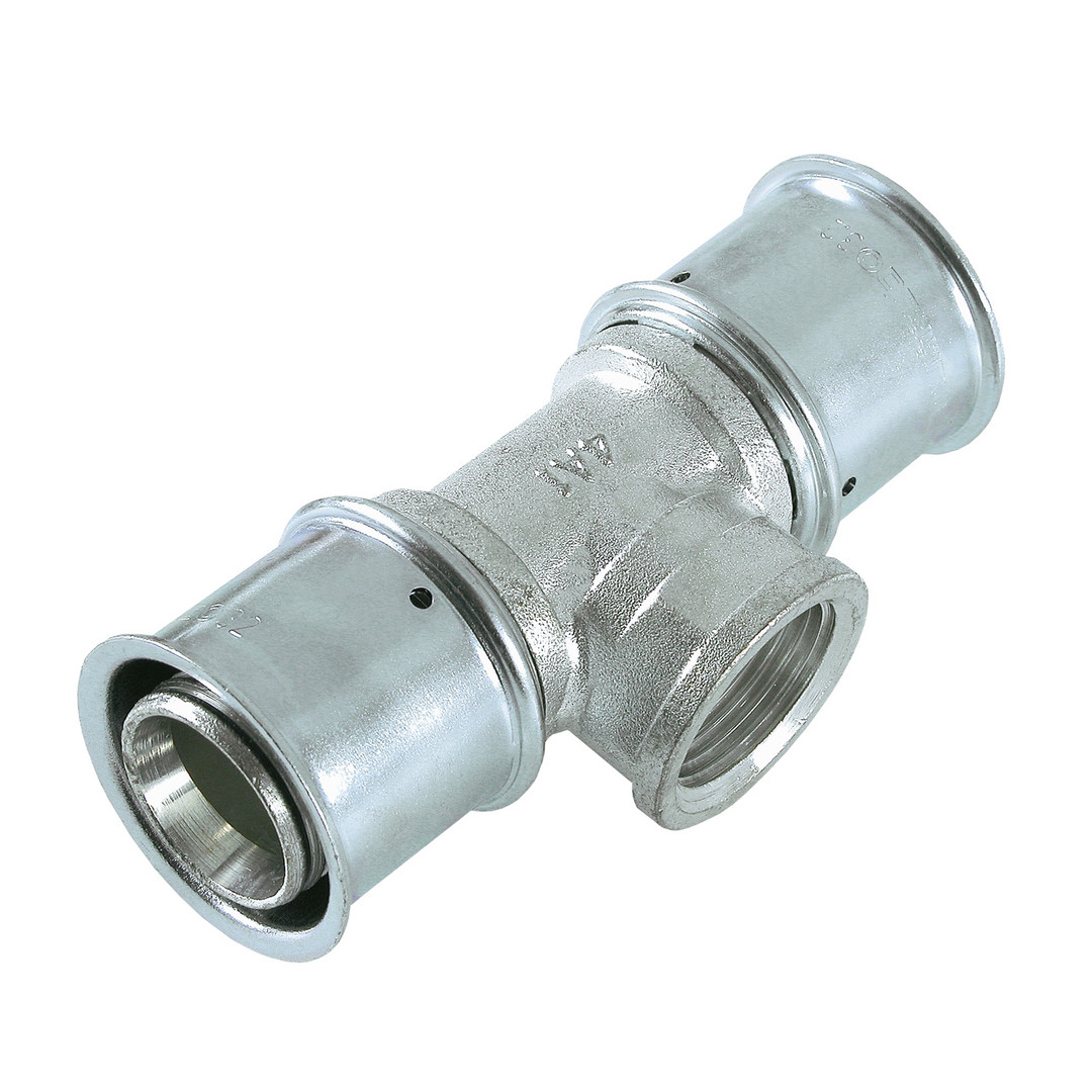Multitubo Metall-Press-T-Stück 25 mm x 1/2" IG x 25 mm, Messing verzinnt 237833