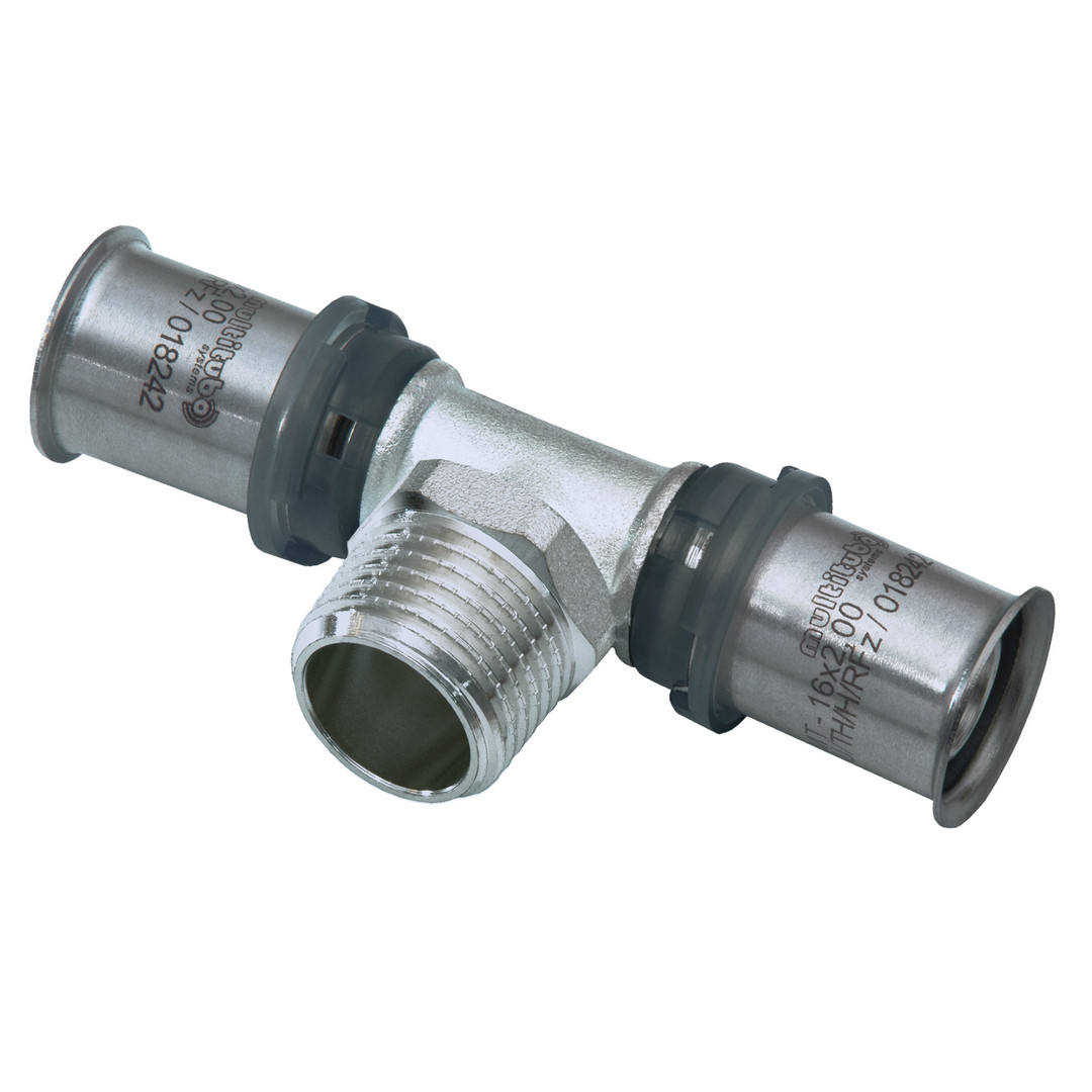 Multitubo Metall-Press-T-Stück G2 16 mm x 1/2" AG x 16 mm, Messing verzinnt W892592