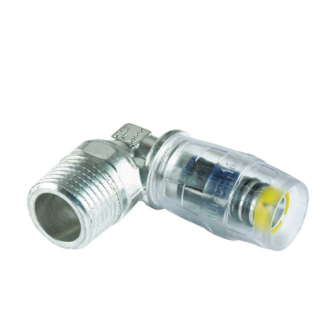 Multitubo Metall-Steck-Winkel 90°, Messing, verzinnt, 16 mm x 1/2 AG