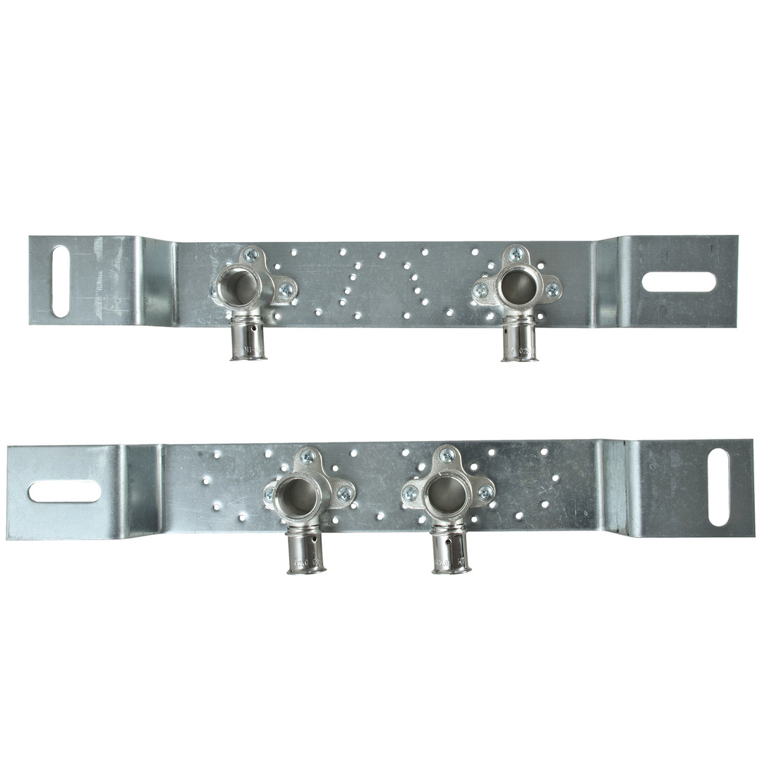 mit 2x Metall-Press-Wandscheiben IG, mit Flansch, vormontiert auf gebogener Halteplatte aus verzinktem Stahl mit Montageabstand 75 mm oder 150 mm