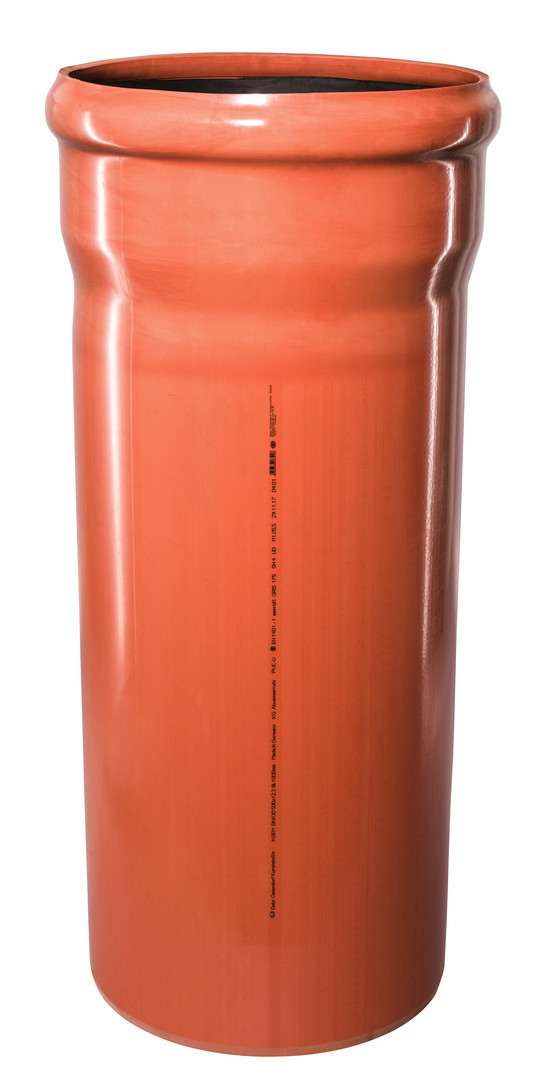 Vollwand, Anwendung für erdverlegte Abwasserkanäle und Leitungen, orangebraun RAL 8023, DIN EN 1401-1, geprüft nach GRIS GV 09 mit Gütezeichen Nr. 175, Ableitung von aggressiven Medien im Bereich pH 2-12