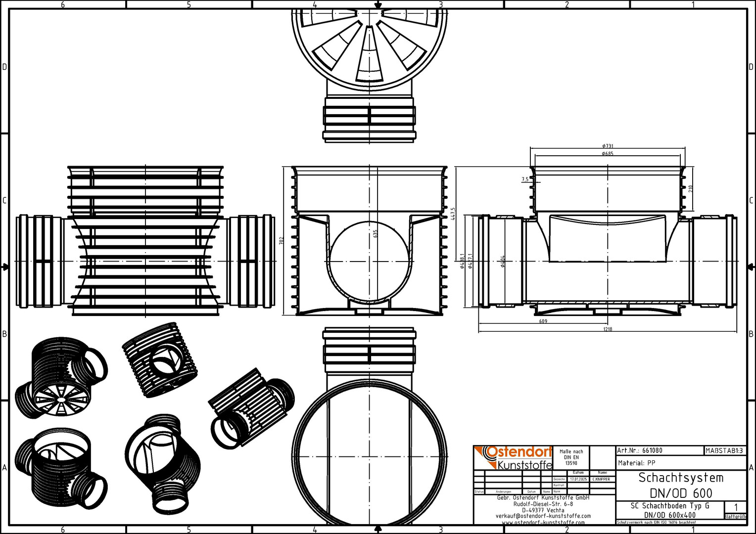 Ostendorf Schachtboden DN/OD 400, gerade, DN 600, PP