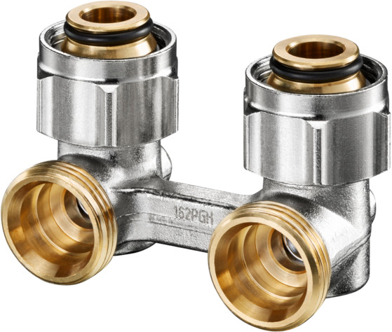 absperrbar, Medium Wasser/Wasser-Glykolgemisch, Betriebstemperatur 2-120 °C, Rohrabstand 50 mm, max. Betriebsdruck 10 bar, Zweirohr