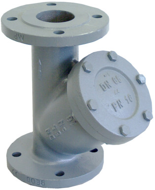Betriebstemperatur 0-120 °C, Gehäuse und Deckel DN 15 bis DN 300 aus Grauguss, DN 350 bis DN 600 aus Sphäroguss, Siebeinsatz aus Niro-Stahl, Siebdurchlassweite DN 15 bis DN 32 1,0 mm, DN 40 bis DN 150 1,5 mm, DN 200 bis DN 300 2,0 mm, DN 350 bis DN 600 3,0 mm, Medium Wasser/Wasser-Glykolgemisch