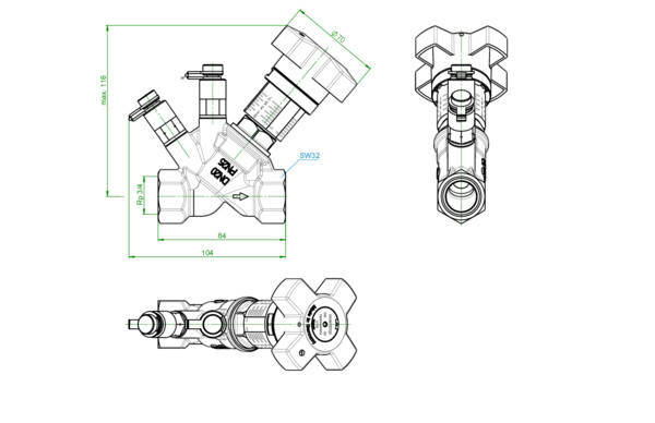 Oventrop Strangregulierventil Hydrocontrol VTR DN 32, PN 25, Set 2 = 2 Messventile G 1/4 W810004