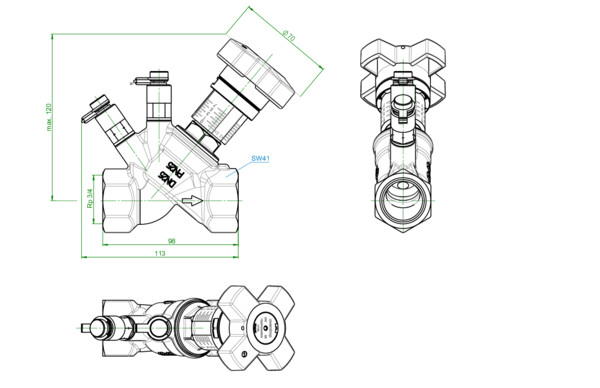beiderseits Innengewinde nach EN 10226, voreinstellbar, Gewinde, Rotguss
