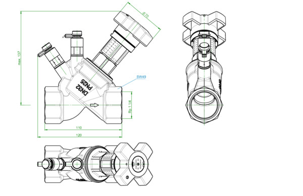 beiderseits Innengewinde nach EN 10226, voreinstellbar, Gewinde, Rotguss