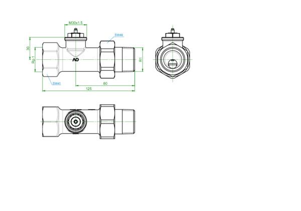 für hohen Durchfluss, Gewindeanschluss M 30 x 1,5, Medium Wasser-Glykolgemisch/Wasser, max. Betriebsdruck 10 bar, Betriebstemperatur 2-120 °C, Einrohr und Zweirohr