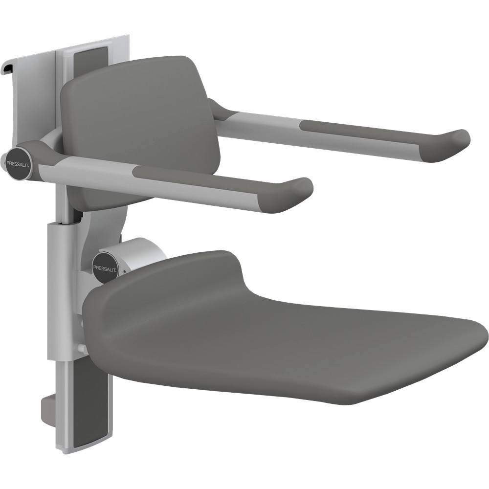 PLUS Duschsitz 450, hö.+seitl. verst.bar Anthr., m.Arm+Rückenlehne, klappbar