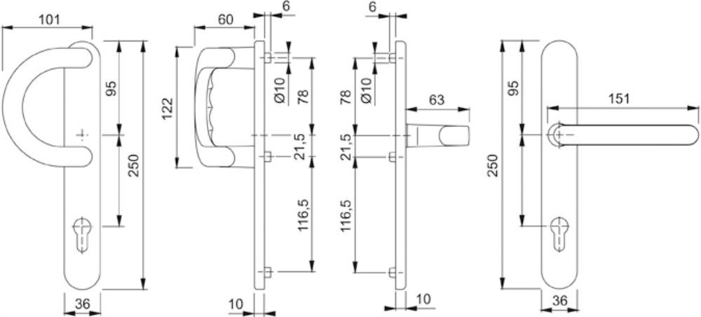 • HOPPE-Aluminium-Profiltür-Langschild-Garnitur