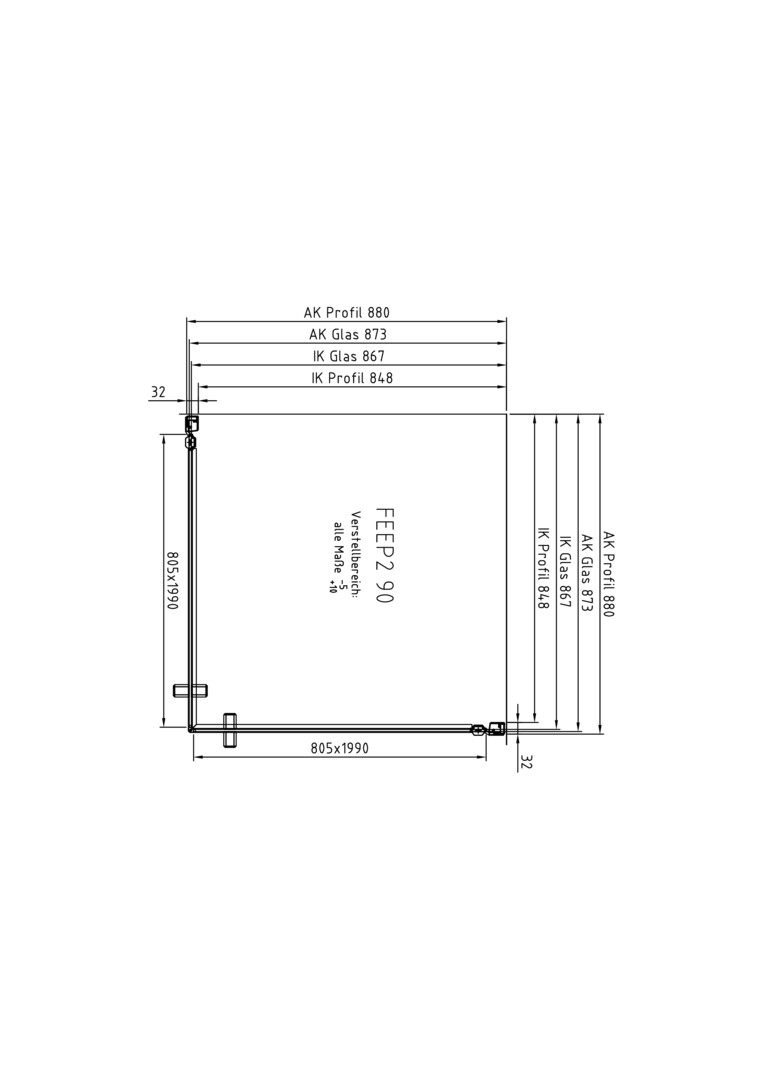 Palme Eckeinstieg Ferox 73,5 x 200 cm, ESG transparent, cenit-chrom, 2-teilig W232142