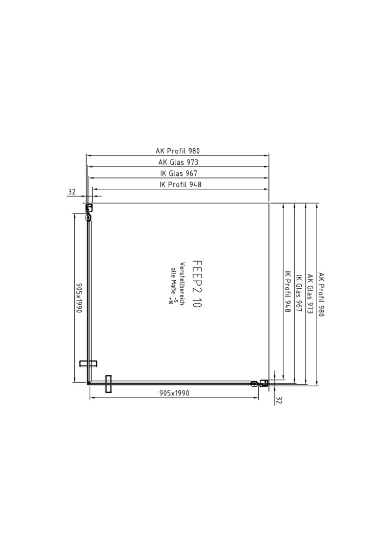 Palme Eckeinstieg Ferox 73,5 x 200 cm, AK ESG transparent, cenit-chrom, 2-teilig W232145
