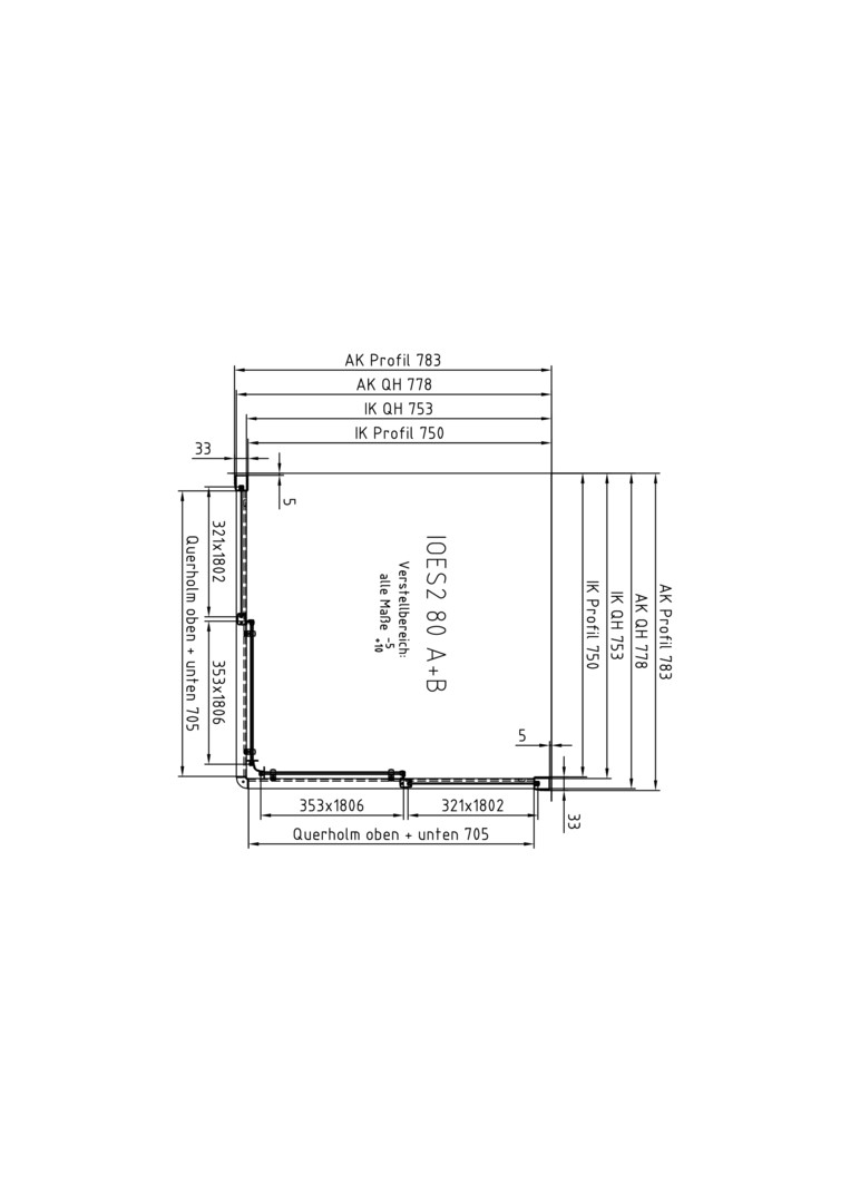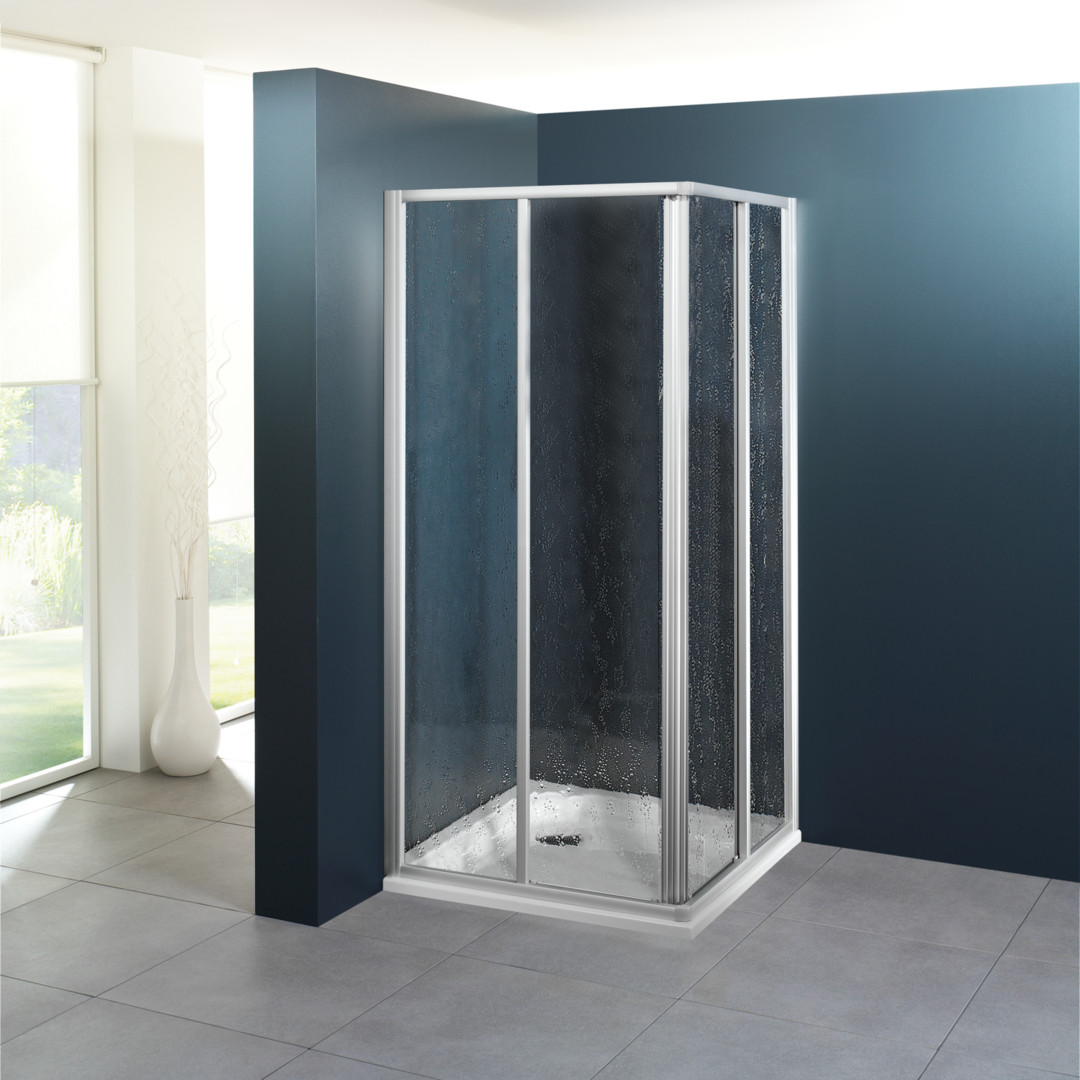 Palme Eckeinstiegshälfte 2-tlg. Valletta EOS 78,5 x 185 cm, rechts, KGL Tropfen transparent, Alusilber W280810