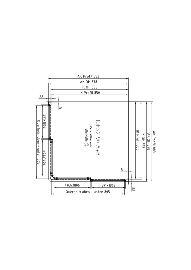 3 mm Kunststoffglas "Tropfen transparent", Standardhöhe 1850 mm, Schiebetüren, Verstellbereiche 15 mm je Hälfte, PALM.motion, PALM.isi-clean