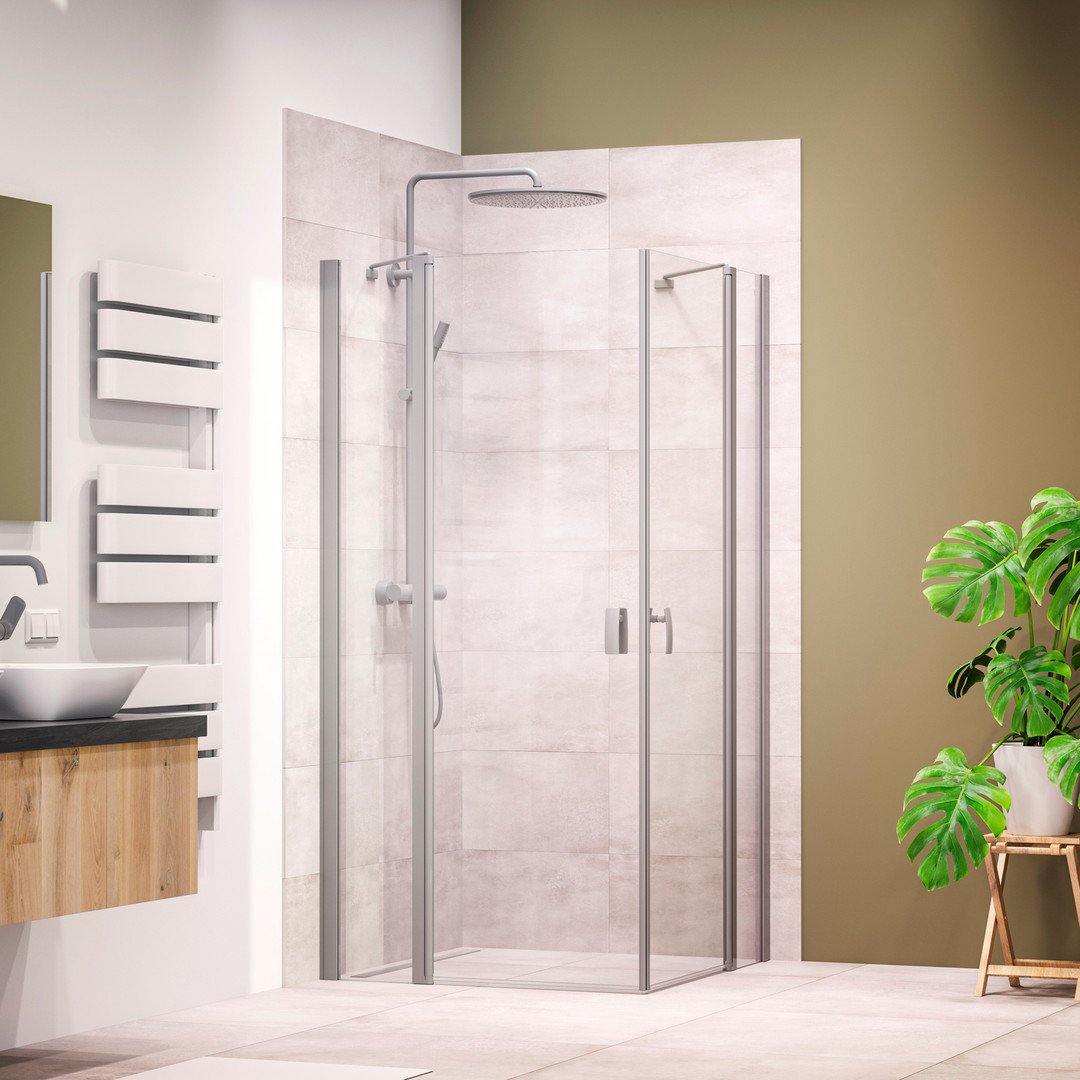 Palme Eckeinstiegshälfte 2-tlg. Valletta PT 90 x 200 cm, alusilber, rechts, mit Pendeltür, ESG nano
