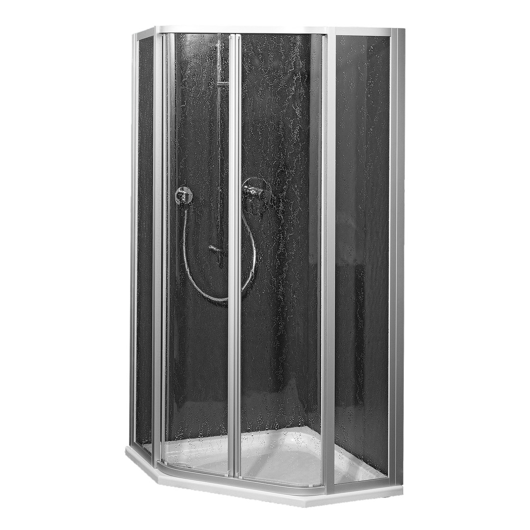 Palme Fünfeckabtrennung mit Schiebetüren Drive LB 88/78 x 173,7 cm, KSG Tropfen transparent, alusilber, 4-teilig W232544