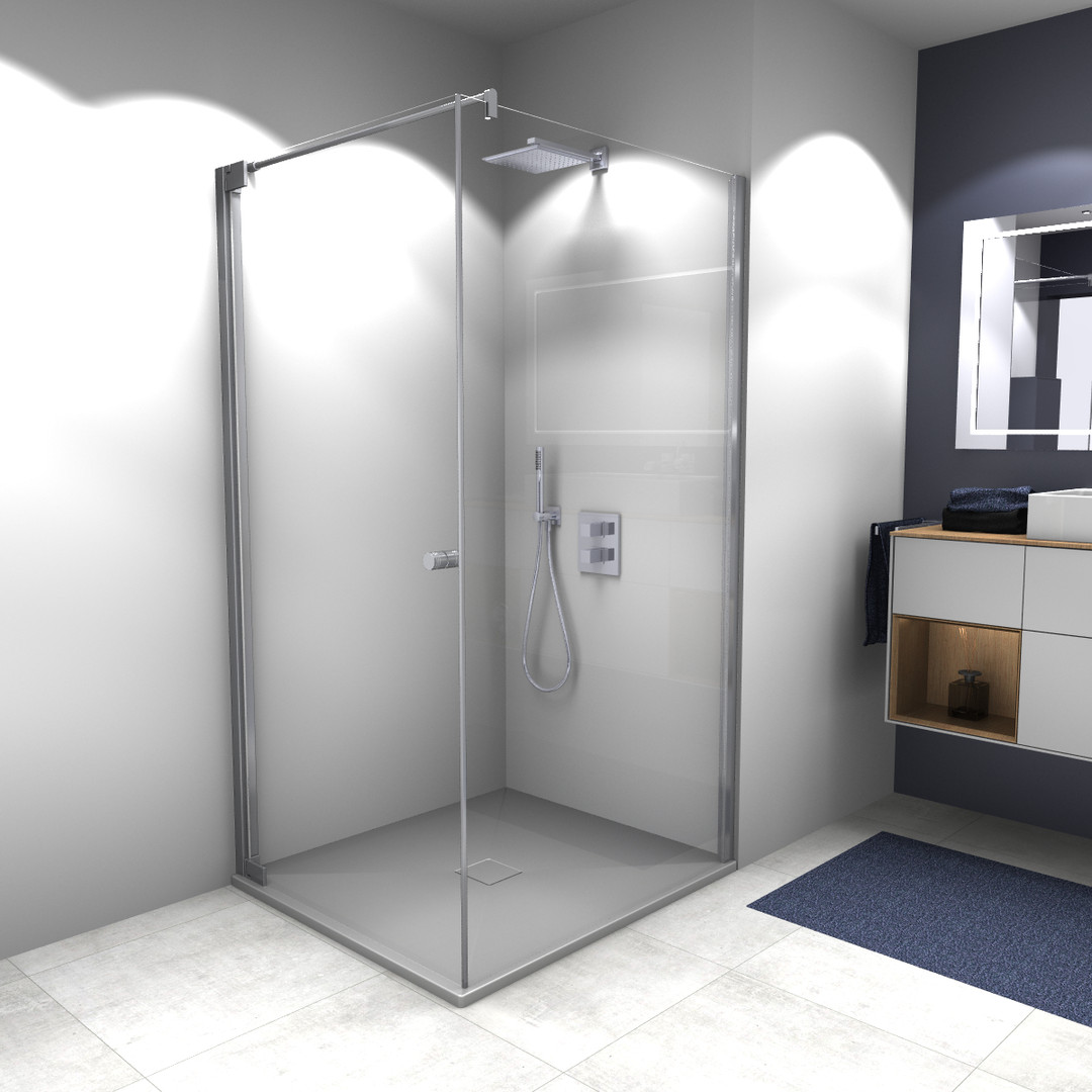 Glas 8 mm ESG, Standardhöhe 200 cm, Tür öffnet nach Innen und Außen, bodeneben, ohne Schwallschiene, PALM.fix, PALM.lift, PALM.free, PALM.isi-clean, optional: PALM.nano, PALM.care
