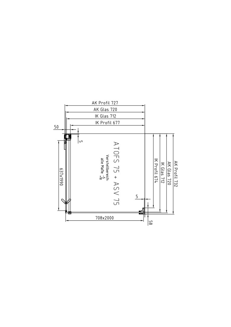 | Einbaubreite Tür für die Montage mit Seitenwand | 735 - 750 mm |