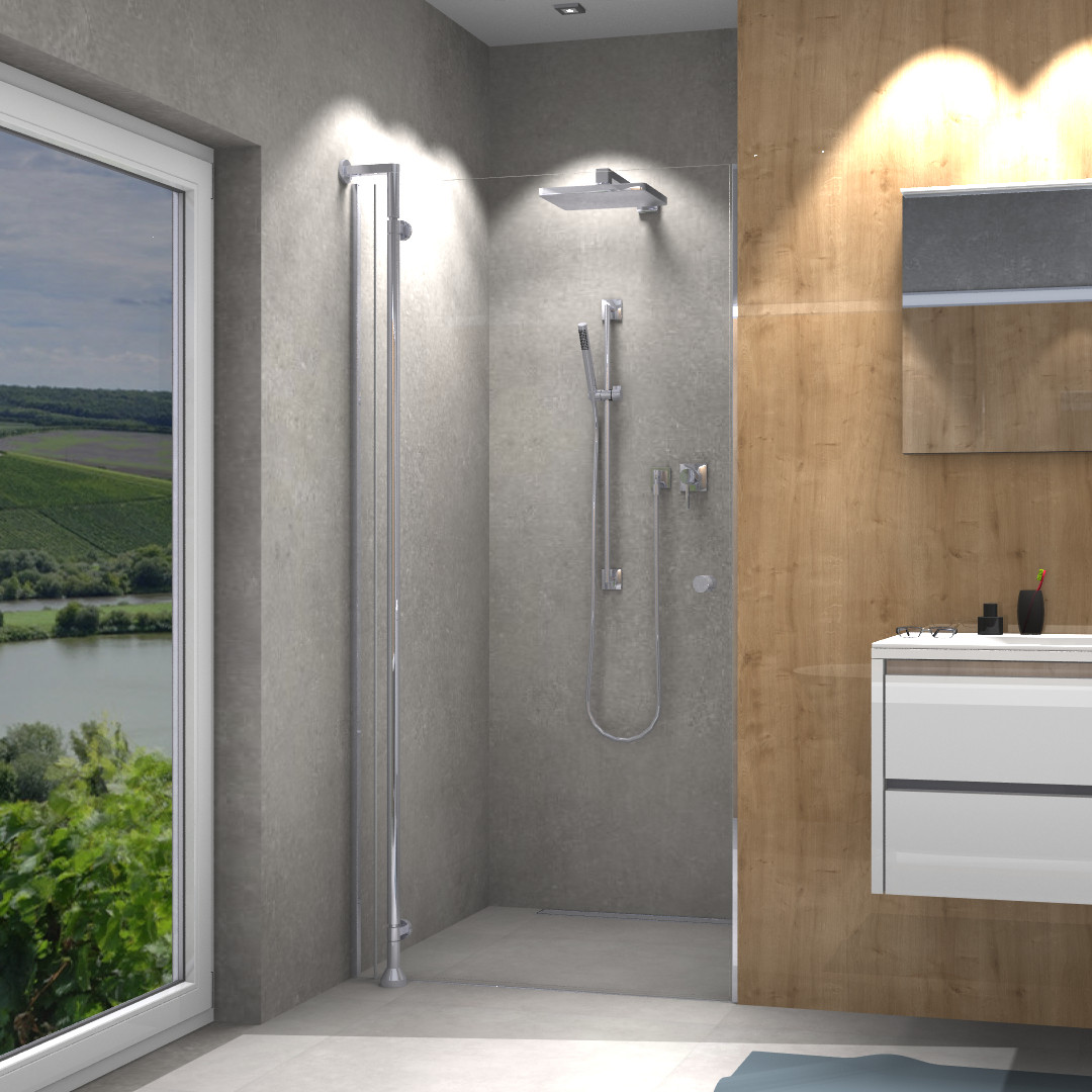 Palme Pendeltür Tube OUTside Nischeneinbau 79,5 x 200 cm, links, AK ESG transparent, alusilber, 8mm, auf Fliese