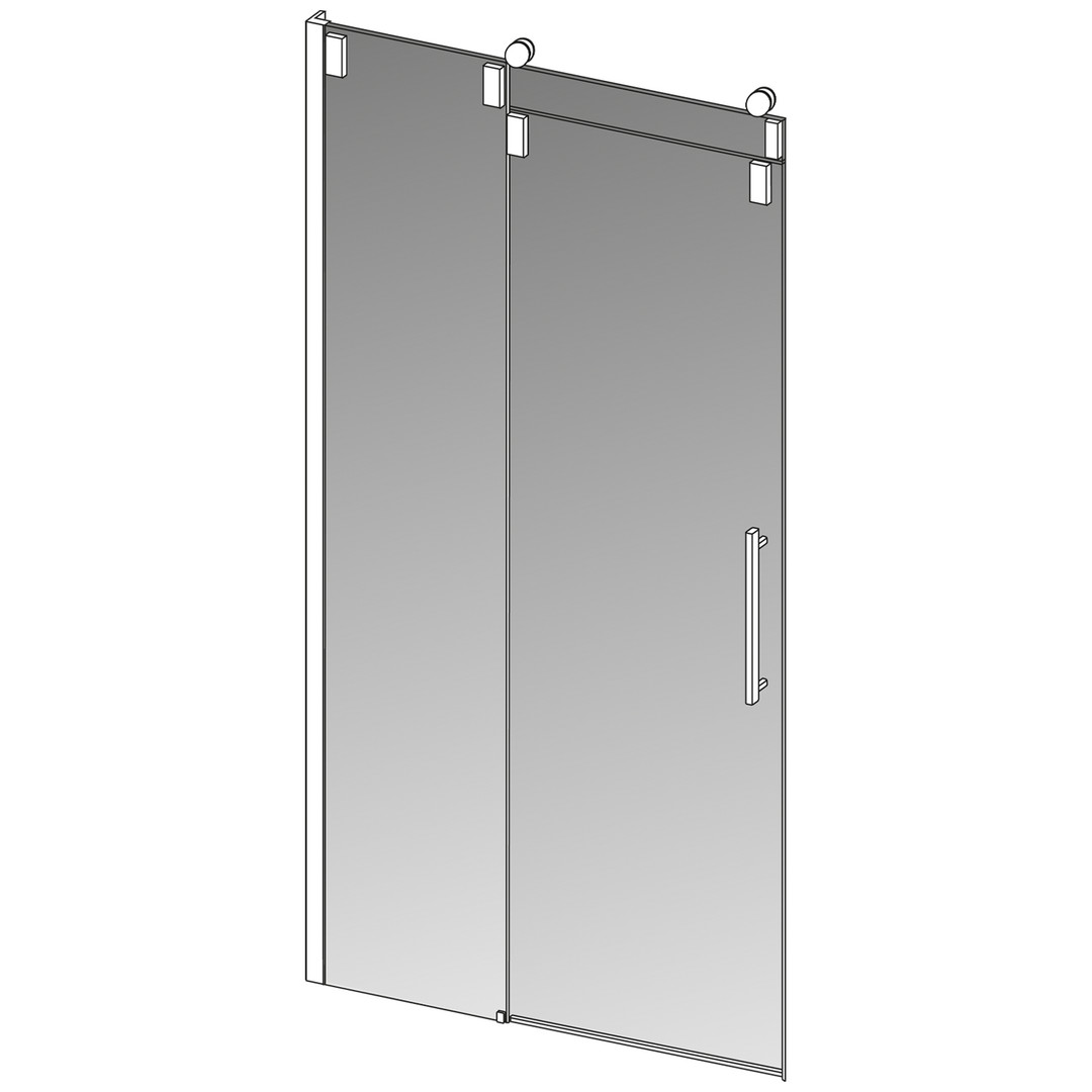 Glas 8 mm ESG transparent, Glaszarge 13 mm VSG, Standardhöhe Oberkante Glaszarge 2120 mm (Glaszarge 120 mm) plus 55 mm für Laufrollen, ein Teil fix, ein Teil schiebbar, optional mit 8 mm hoher Schwallschiene, PALM.free, PALM.fix, PALM.pro, PALM.motion, PALM.isi-clean, optional PALM.nano, PALM.care, durchgehendes Wandbefestigungsprofil mit Verstellbereich