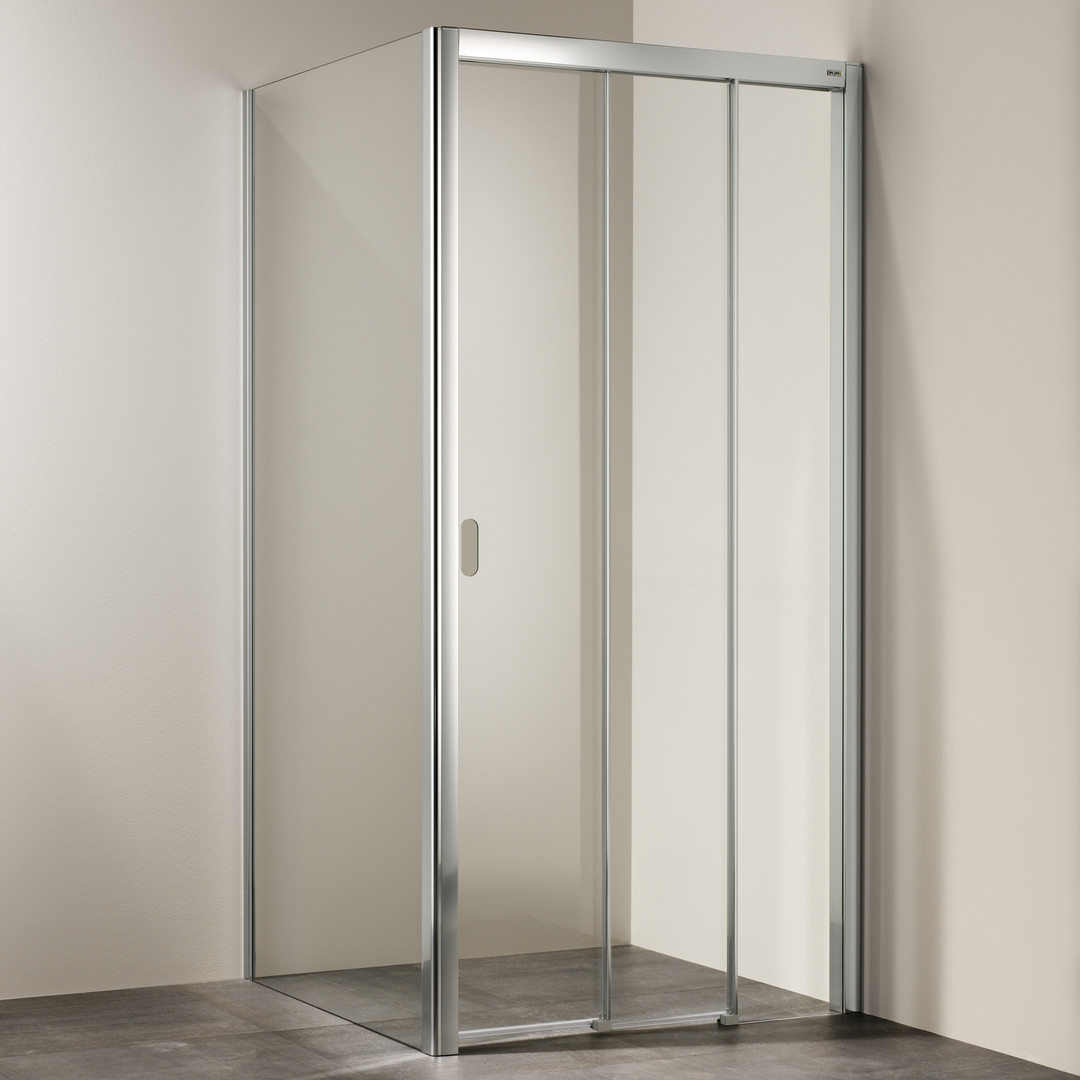 Glas 6 mm ESG transparent, Standardhöhe 2000 mm, Schiebeelemente ein Teil fest, zwei Teile verschiebbar, optional mit Bodenleiste (Wasserschwallleiste), PALM.free, PALM.fix, PALM.lift, PALM.motion, PALM.isi-clean, optional PALM.nano, PALM.care