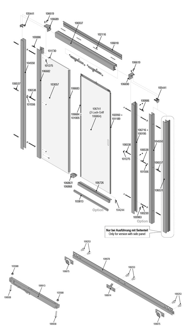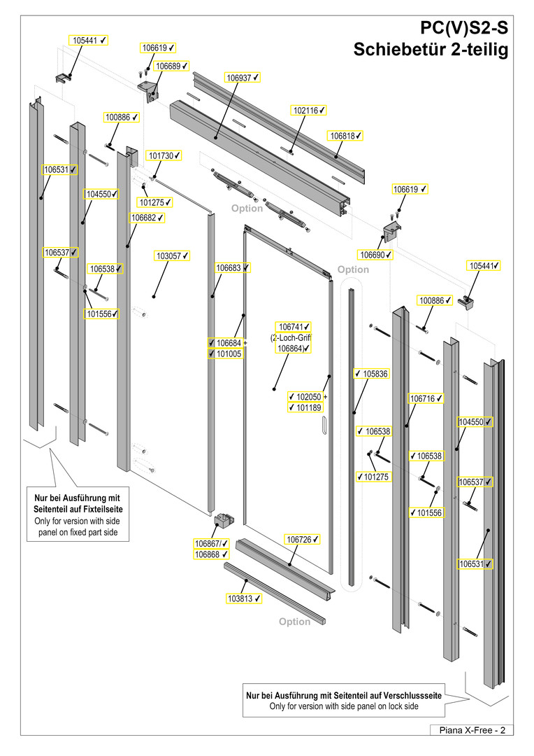 | Art der Tür | Schiebetür zweiteilig mit einem Festfeld |