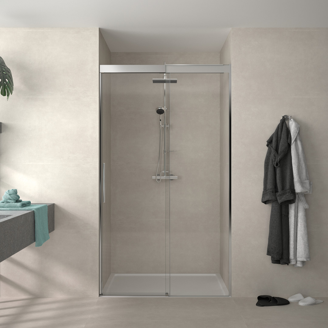 Palme Schiebetür XSlide Vario für Nischeneinbau 126 x 210 cm, rechts, AK ESG transparent, cenit-chrom, 2-teilig