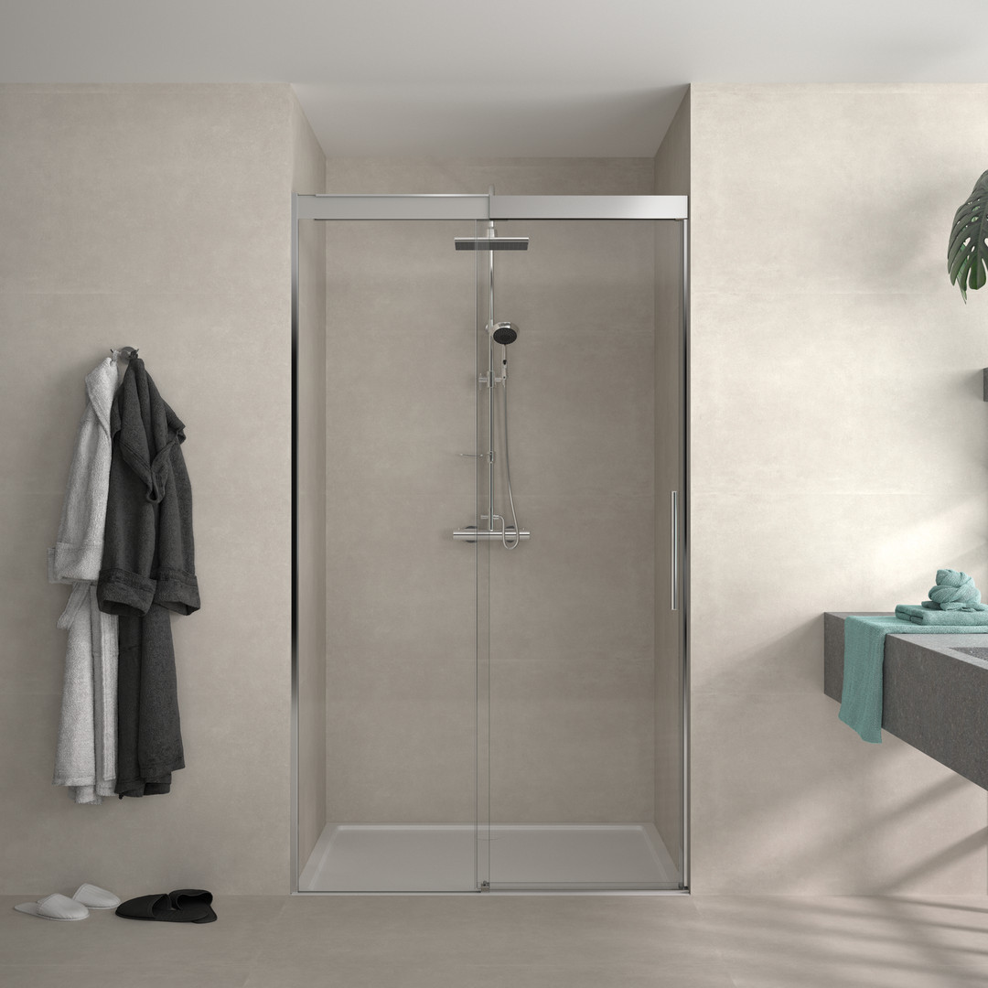Palme Schiebetür XSlide Vario für Nischeneinbau 146 x 210 cm, links, ESG transparent, cenit-chrom, 2-teilig