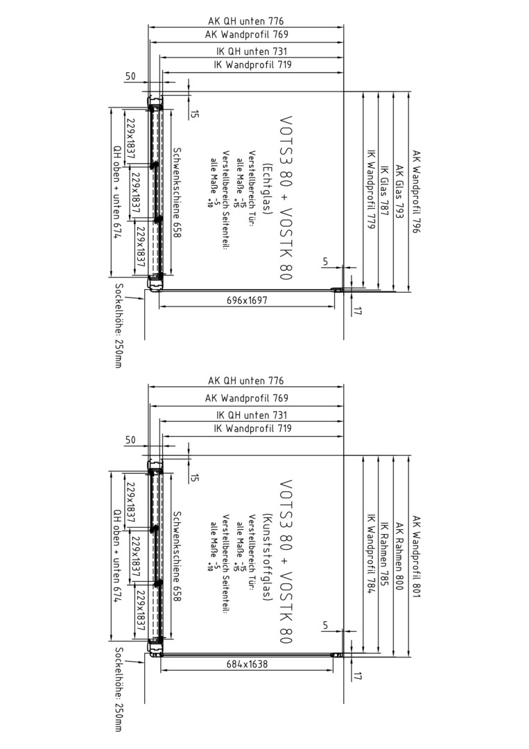 | Einbaubreite Wand für die Montage mit Tür | 785 - 800 mm |