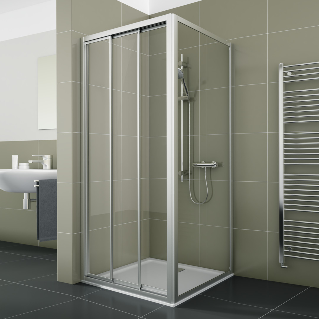 Palme Seitenteil zu Schiebetür 3-tlg. Valletta FO 68,5 x 195 cm, ESG nano, alusilber, für Eckeinstieg 6-tlg, teilgerahmt
