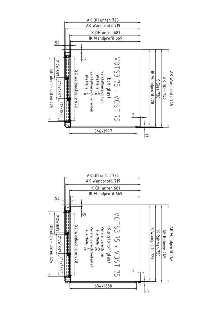 | Einbaubreite Wand für die Montage mit Tür | 735 - 750 mm |
