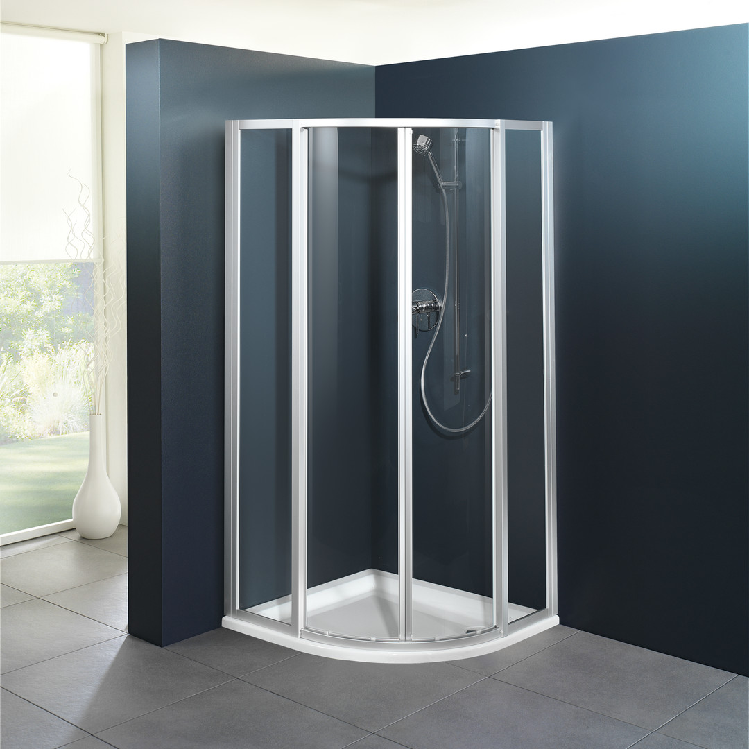 Palme Viertelkreis-Schiebetür Drive LB 78/78 x 188,7 cm, KSG Tropfen transparent, alusilber, 4-teilig W232592