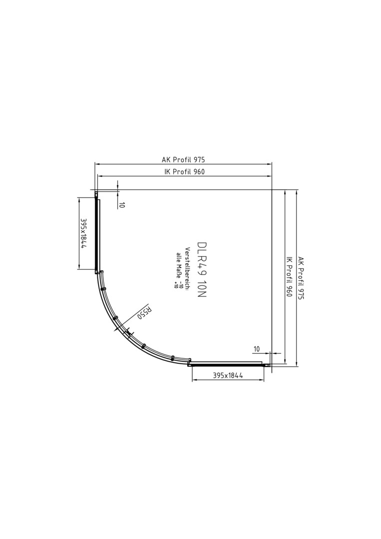 Palme Viertelkreis-Schiebetür Drive LB 98/98 x 188,7 cm, KSG Tropfen transparent, alusilber, 4-teilig