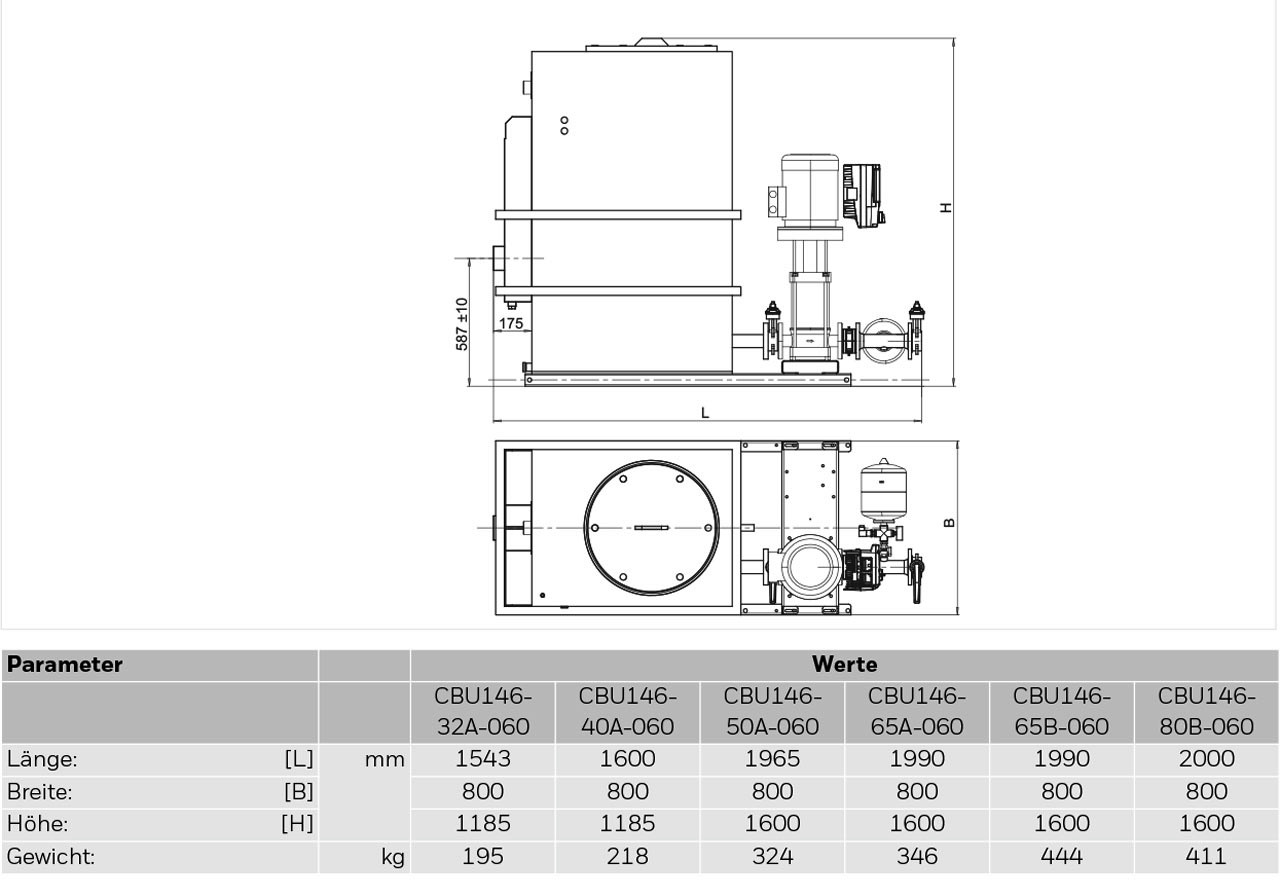 kompakte Ausführung, als Sicherungseinrichtung zur Trennung von Trinkwasser und Flüssigkeiten der Kategorie 5 nach DIN EN 1717, mit freiem Auslauf Typ AB und vertikaler Hochdruckpumpe, vollautomatisch, modulare Bauweise (ermöglicht eine Abtrennung der Baugruppe für die Installation in Gebäuden mit eingeschränkten Platzverhältnissen), bestehend aus einer Einzelpumpenanlage und einem Vorlagebehälter für die hygienische Trennung von Trinkwasser und Flüssigkeiten der Kategorie 5 nach DIN EN 1717 auf gemeinsamen Grundrahmen, die Anlage wird druckabhängig ein- und ausgeschaltet, max. Umgebungstemperatur 40 °C, max. Mediumstemperatur 30 °C