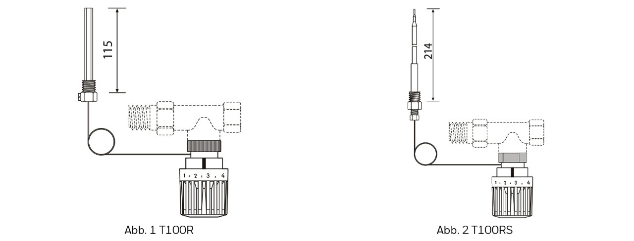 Schließmaß 11,5 mm, M 30 x 1,5 mm, Flüssigkeits-Temperatur-Messelement, Kapillarrohr 2 m, Fernfühler und Tauchhülse