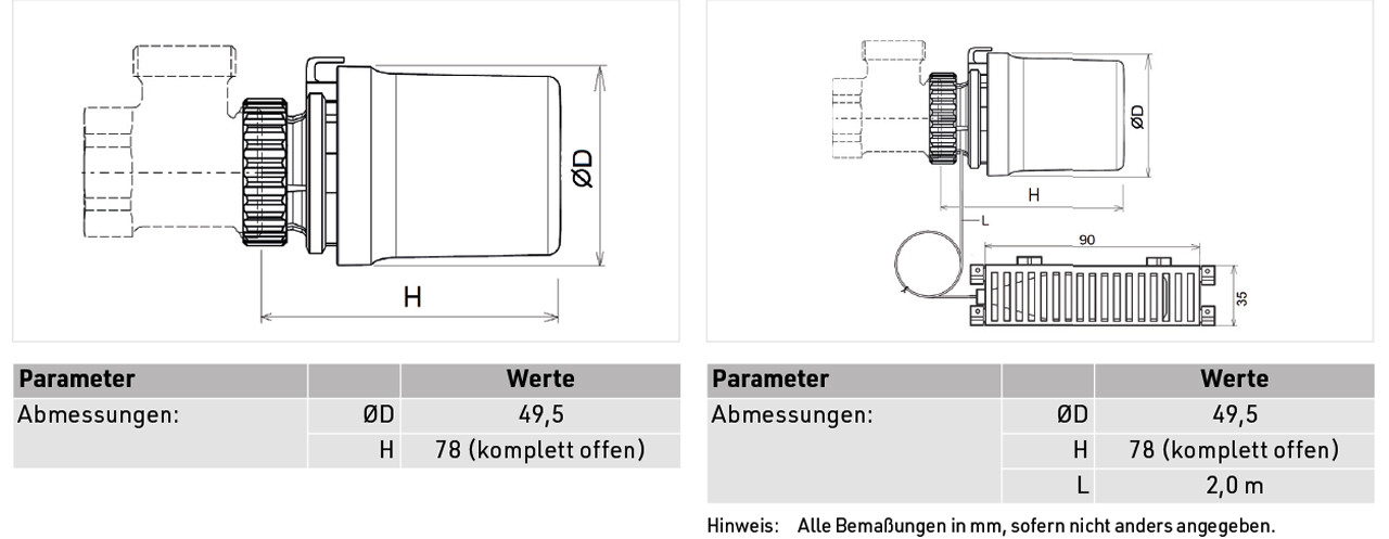 | Abmessung Thermostatanschluss | M30 x 1,5 |