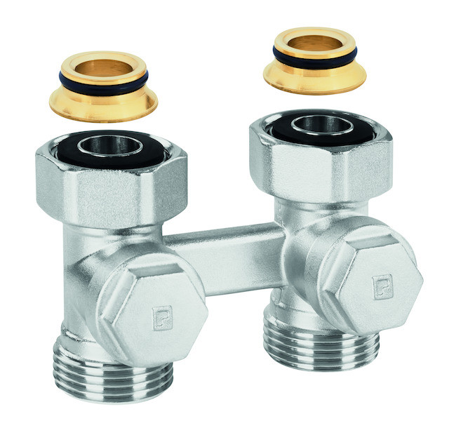 voreinstellbare Absperrverschraubung für Zweirohr-Heizungsanlagen, in denen Kompaktheizkörper mit einem eingebauten Thermostateinsatz und einem Mittenabstand von 50 mm verwendet werden, mit Verafix-Ventileinsatz ausgestattet, über einen optionalen Adapter kann der Heizkörper sicher befüllt und entleert werden, Eck-Ausführung für Wandanschluss, Durchgangs-Ausführung für Bodenanschluss, Heizkörperanschlussoptionen: für Heizkörper mit G 3/4"-Euroconus-Anschluss gem. EN 16313 und über einen Reduziernippel für Heizkörper mit G 1/2"-Innengewinde, für Heizkörper mit G 3/4"-Außengewinde und Flachdichtung, sowie unter Einsatz eines Dichtkonus für Heizkörper mit G 3/4"-Euroconus-Anschluss gem. EN 16313, präzise kV-Regelung für den Heizkörperabgleich, Absperrung durch Verwendung des Spezialschlüssels Verafix oder eines 4mm-Innensechskantschlüssels, Durchflussrichtung beliebig, Durchflusskennlinien für beide Strömungsrichtungen, Entleerung und Befüllung mit Entleerungsadapter möglich, Medium Wasser oder Wasser-Glykol-Gemisch gemäß VDI-Richtlinie 2035 mit ph-Wert 8...9,5, Gehäuse aus Pressmessing (matt vernickelt), Oberteil und Anschlüsse aus Messing, Überwurfmuttern und Schutzkappen aus Messing vernickelt, O-Ringe und Dichtringe aus EPDM oder NBR, Mediumstemperatur -10 °C (frostfrei) bis 130 °C, stat. Druck PN 10, Voreinstellung ja, Rohranschluss Außengewinde, Einbauort Vorlauf und Rücklauf, Nennweite DN 20, Achsabstand 50 mm, Einstellbegrenzung ja, Befüllen/Entleeren ja, Mess-Möglichkeit nein